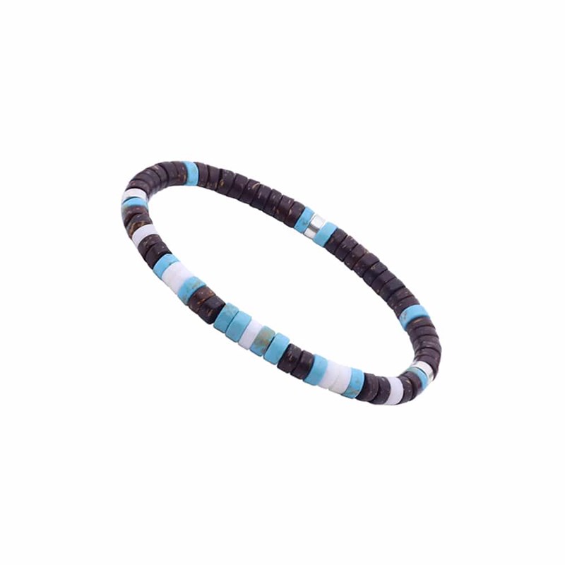 Bracelet homme coquillage clearance, Bracelet homme turquoise perles coco et coquillage perles heishi - Homme - Bracelet souple | MATY clearance