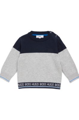 Pull hugo boss bebe clearance, BOSS - Pull enfant en maille de coton peigné avec taille à logo clearance