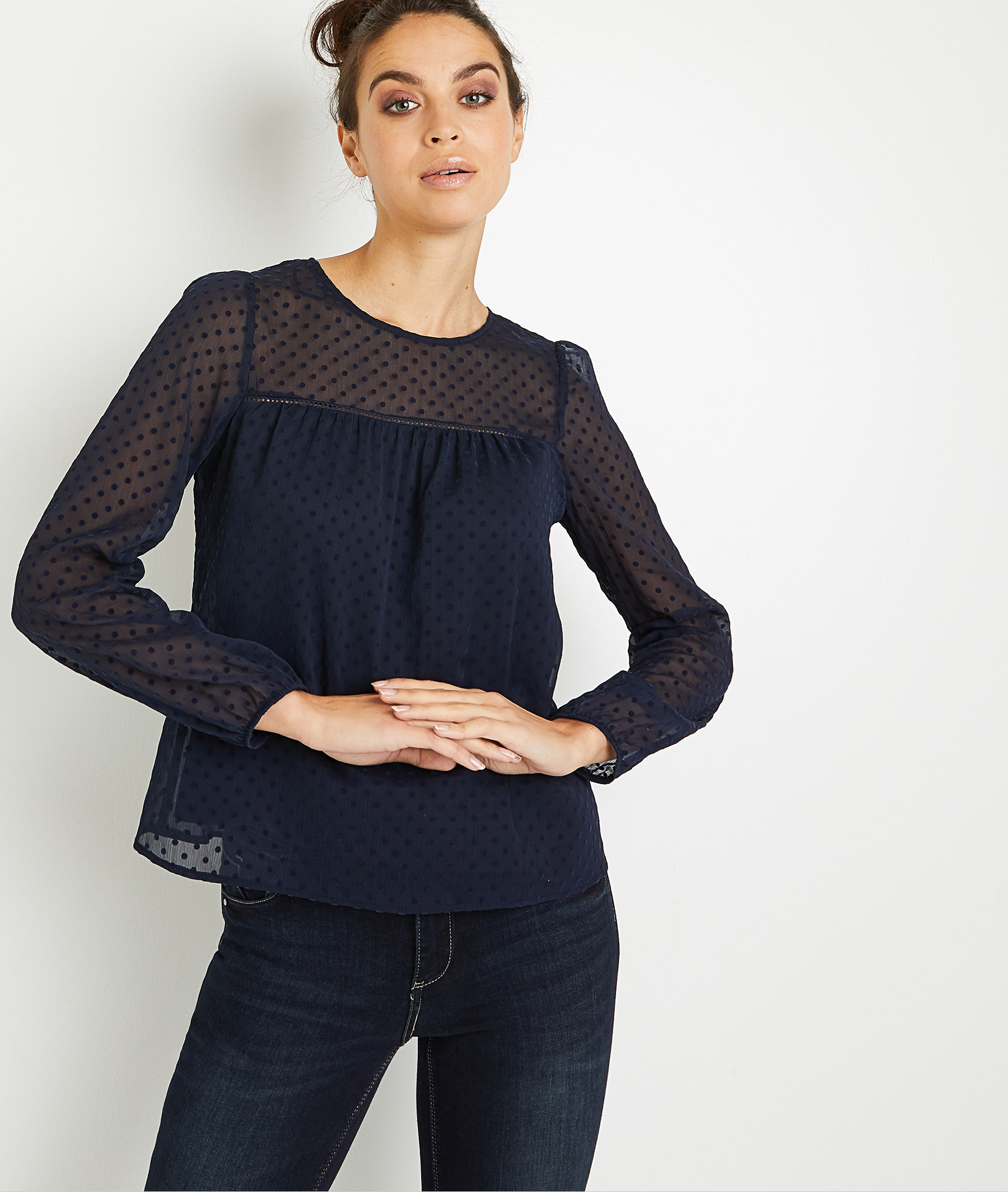 Blouse bleu marine clearance, Blouse en plumetis bleu marine femme MARINE - Grain de Malice clearance