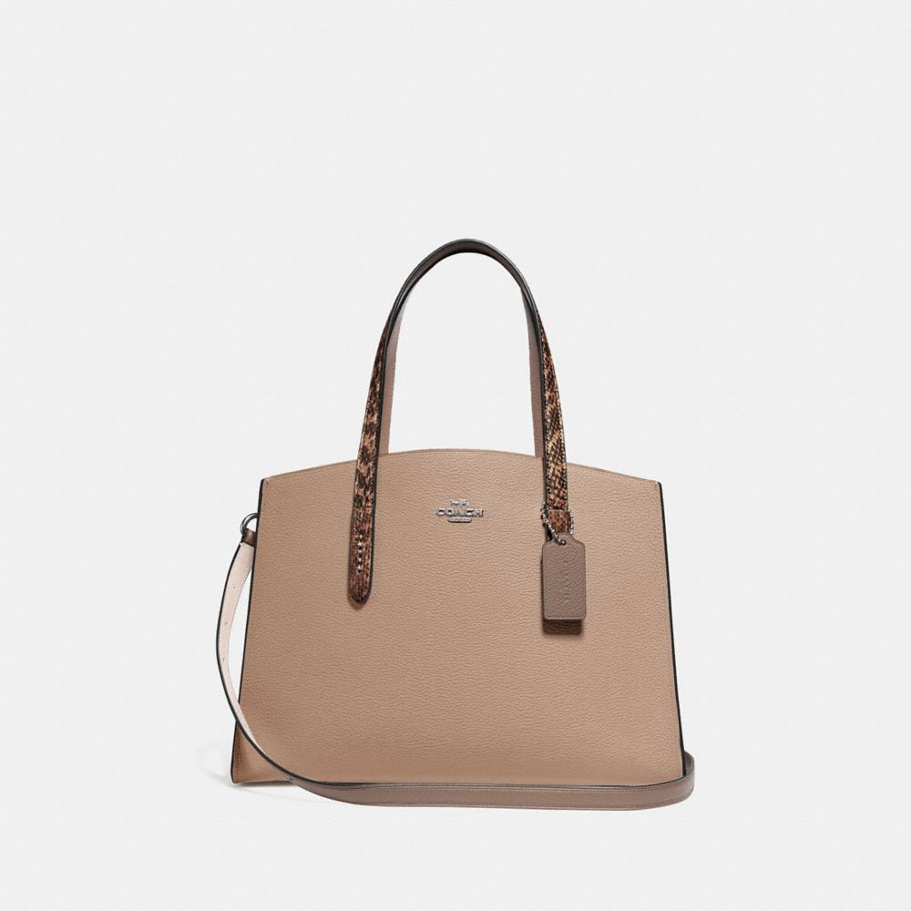 - Shopping Charlie carryall with colorblock snakeskin handles