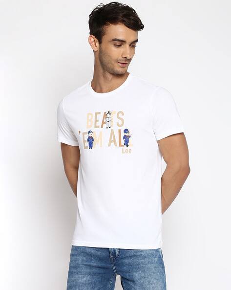 Gap slim fit t shirt clearance, Lee Typographic Printed Slim Fit T-shirt For Men (White, XXL) clearance