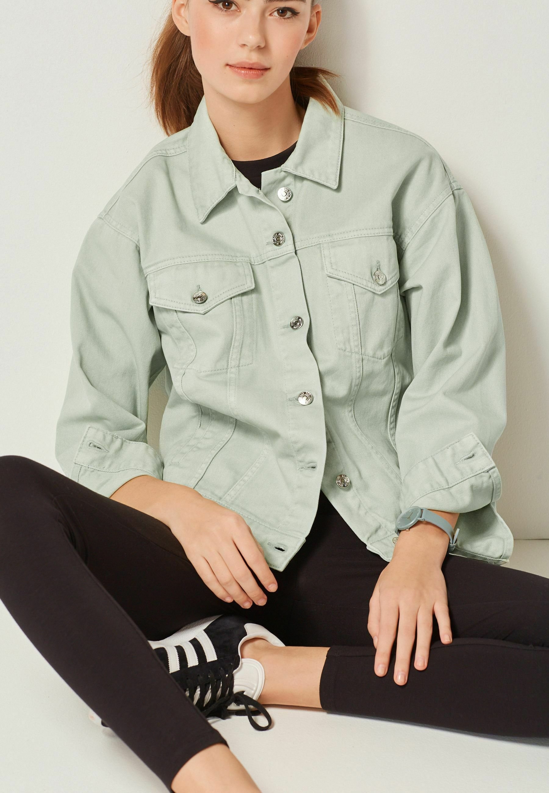Sage denim shirt clearance, OVERSIZED - Denim jacket - sage green clearance