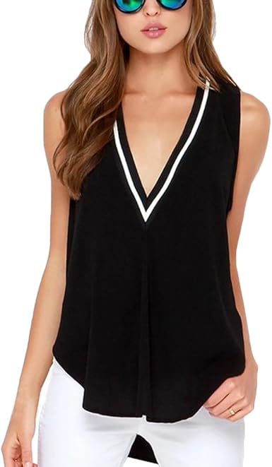 Top col v femme clearance, Chouette Femme Top sans Manche Col V Blouse Noir Vintage Débardeurs Casual Tops: Amazon.fr: Vêtements et accessoires clearance