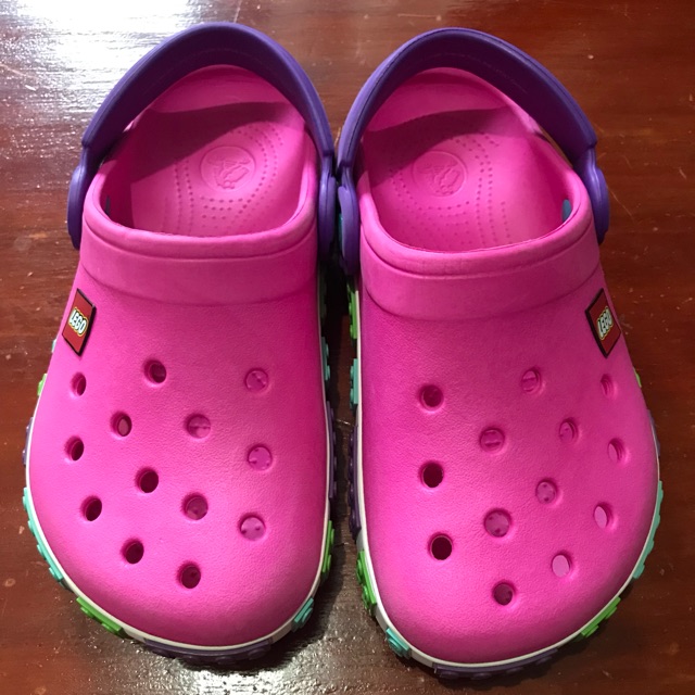 Pink and purple crocs clearance, Preloved Original Crocs Lego Design clearance
