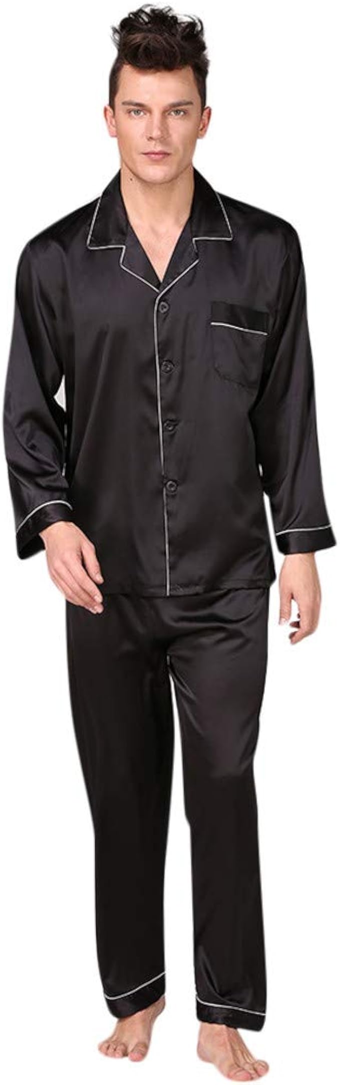 Pyjama homme chemise pantalon clearance, Homme Pyjama Satin, Bouton Manches Longues Chemise Bas Pantalon Ensemble | eBay clearance