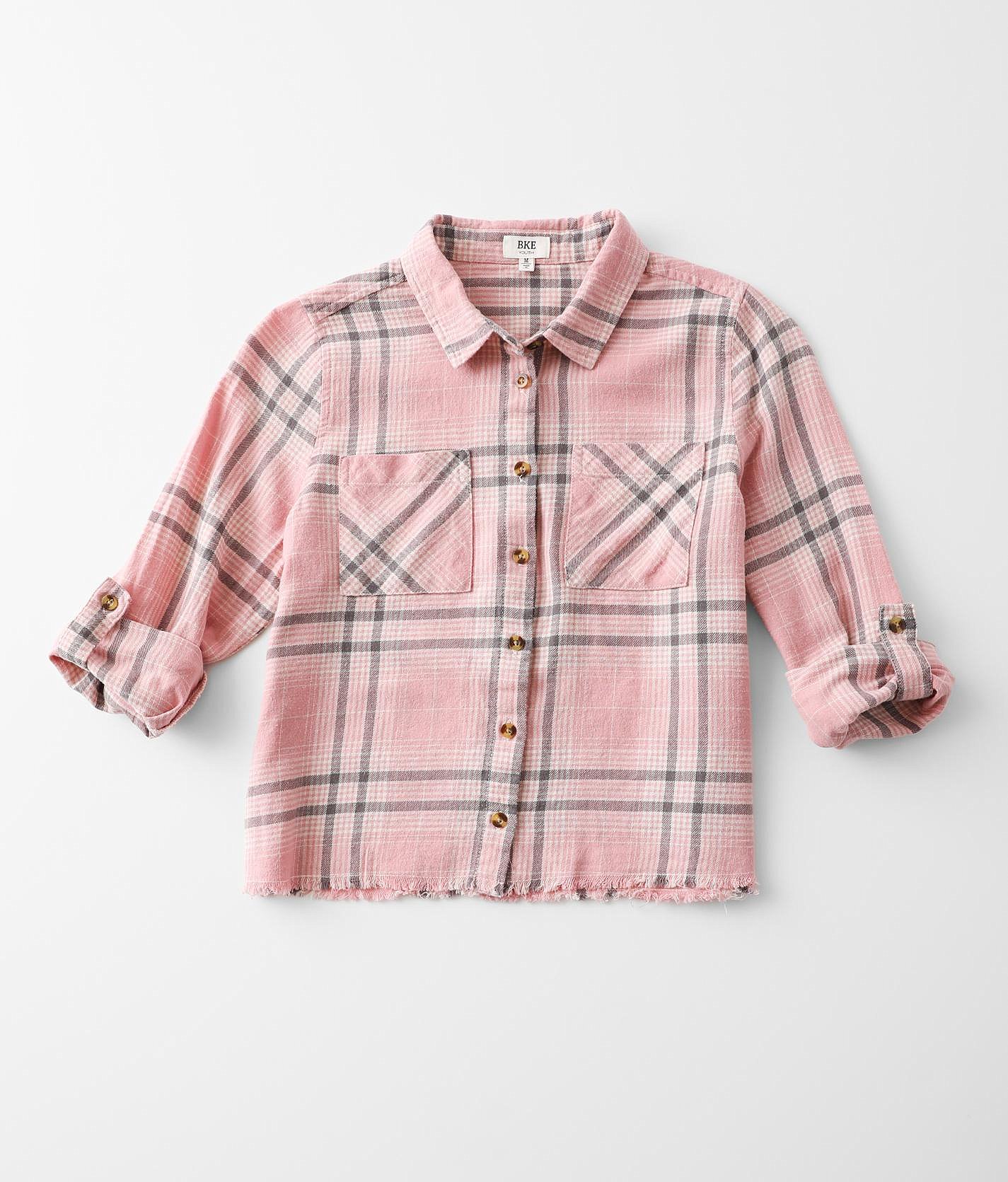 Baby girl pink flannel shirt clearance, Buckle Girls - Bke Flannel Shirt - Pink Medium clearance