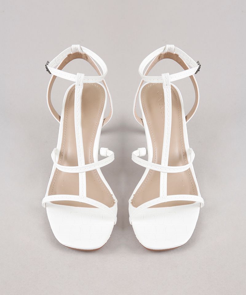 Sandalia cea branca clearance, Sandália Feminina Oneself Croco Salto Fino Tiras Finas Branca clearance