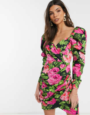 Robe fleurie manche bouffante clearance