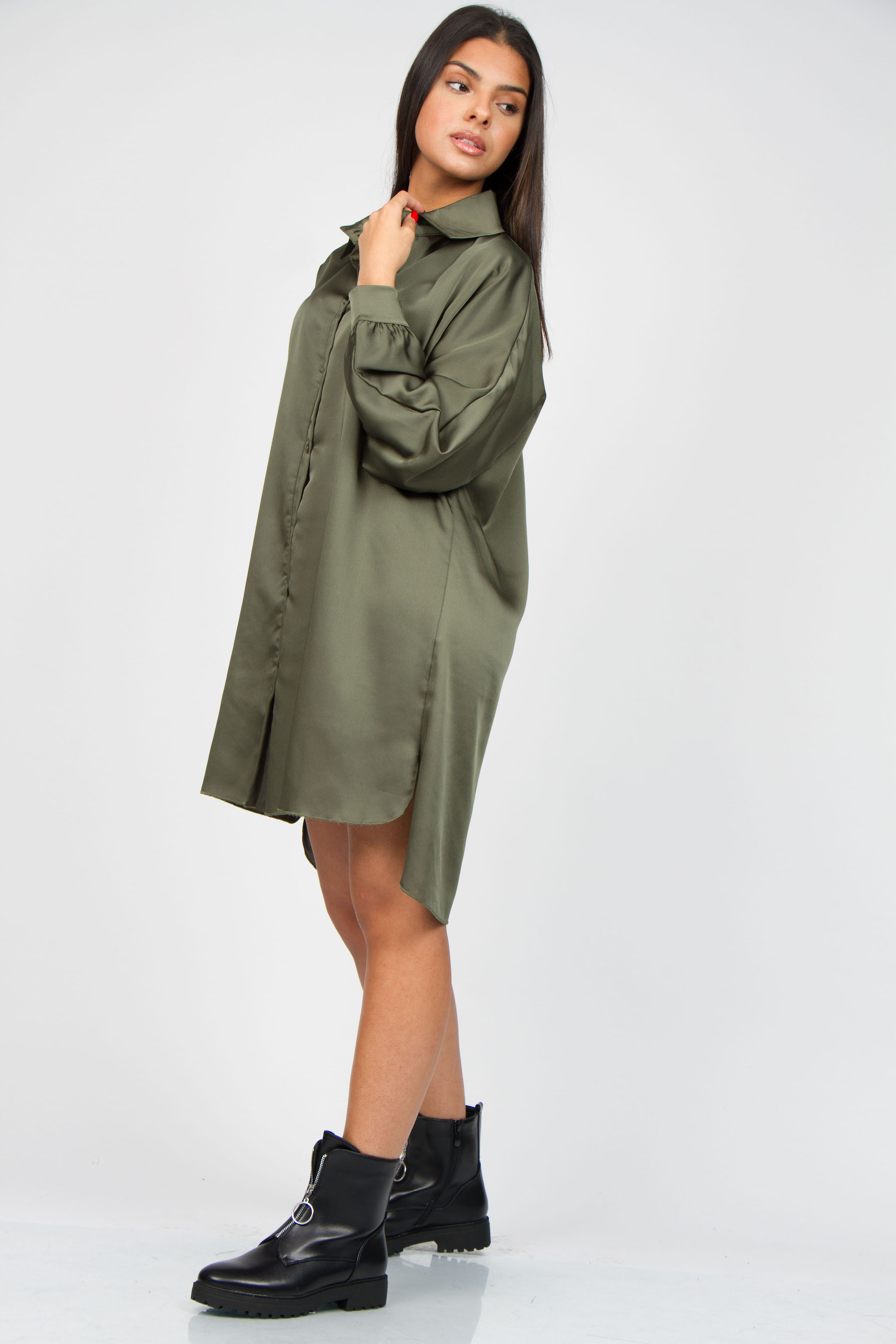 Robe chemise en satin clearance, Robe chemise satin / C11070 kaki - Gossyp by Casys clearance