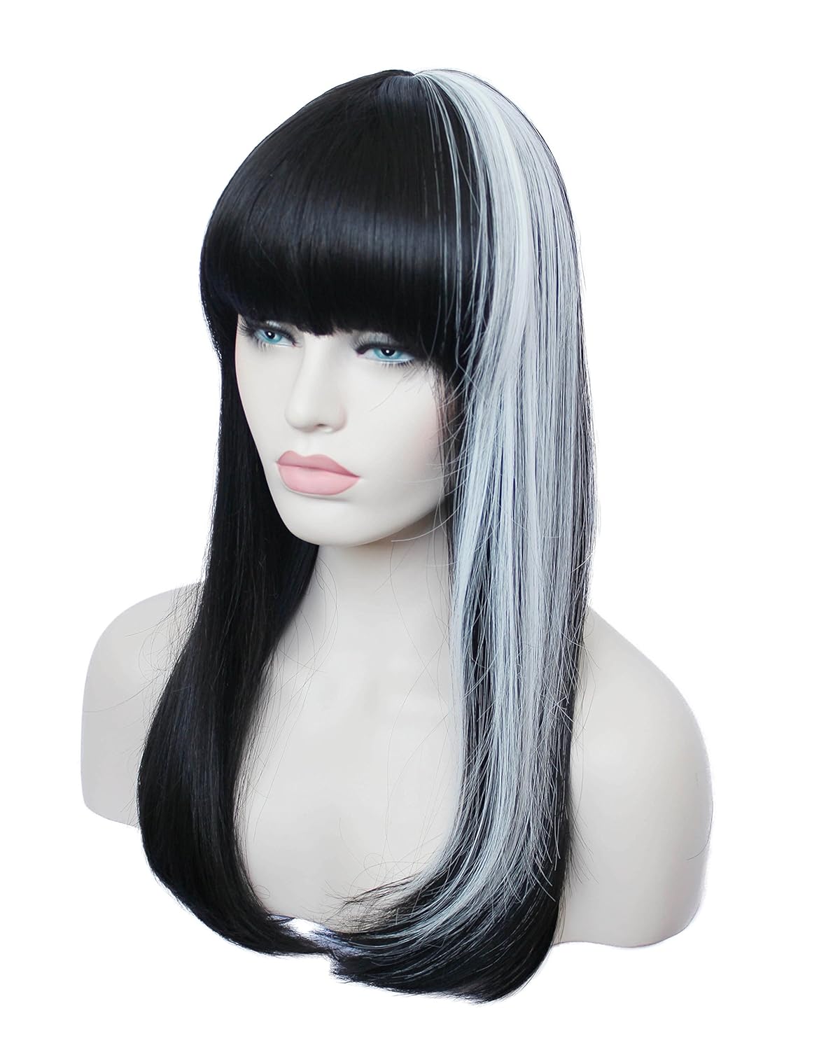 Black wig with white highlights clearance