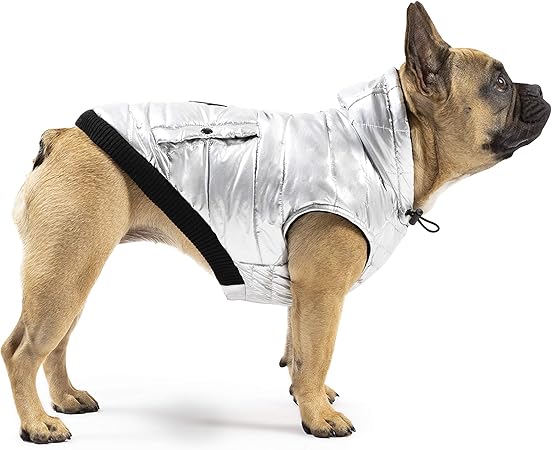 Silver dog coat clearance, Shiny Puffer Dog Vest clearance