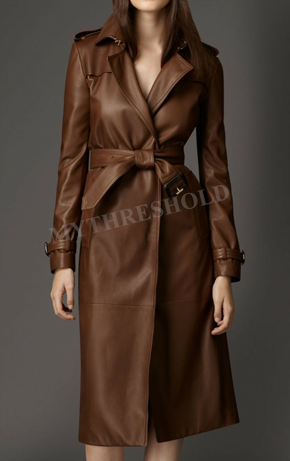 - Long brown leather trench coat shop