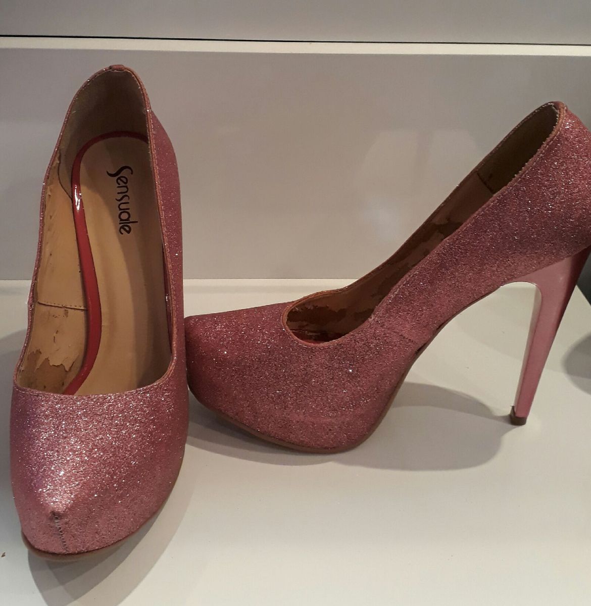 Salto rosa brilhante clearance