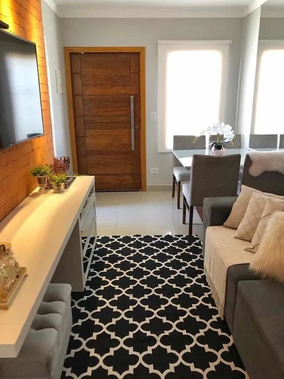 - Sala com tapete preto e branco