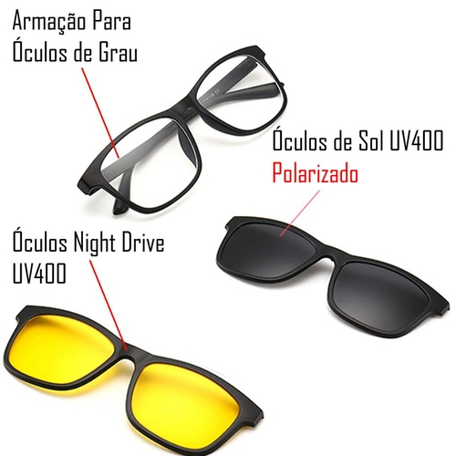 óculos 3 em 1 grau sol e noite clip on polarizado e uv400 clearance, Armação Óculos Grau Sol E Noite Polarizado 3 Em 1 Clip On | Mercado Livre clearance