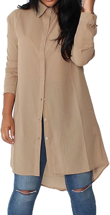 Des chemises longues pour femmes clearance, Chemise Longue pour Femme Mode Casual Loose Mousseline de Soie Tunique à Manches Longue Mini Robe Couleur Unie Loisir Blouse Shirt Chemise avec Boutons: Amazon.fr: Vêtements et accessoires clearance
