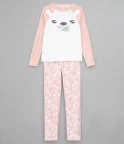 Renner pijama fleece clearance, Pijama Fleece Manga Longa Bordado Orelhas de Coelho com Calça de Flanela clearance