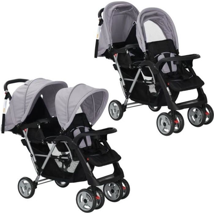 Poussette a deux place clearance, Intelligent-Poussette à deux places Acier Gris et noir - Cdiscount Prêt-à -Porter clearance