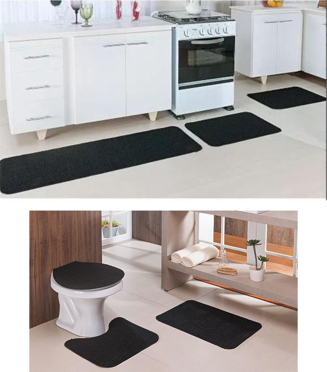 Tapetes para cozinha e banheiro clearance, Kit Tapete Cozinha Relevo e Banheiro Preto 3 Peças Cada nas americanas clearance
