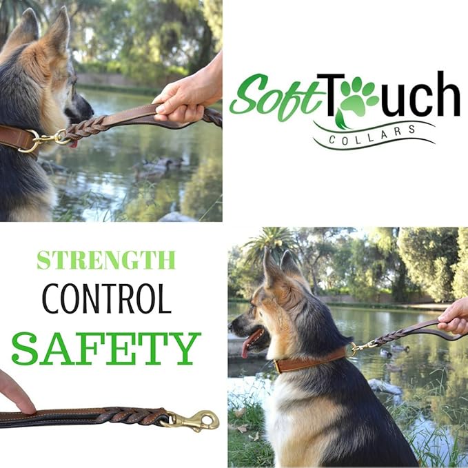 - Soft touch collars braided leather dog leash traffic handle