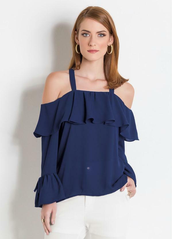 Blusa ciganinha manga longa com babado clearance, Blusa Ciganinha Marinho com Babados - Multimarcas clearance
