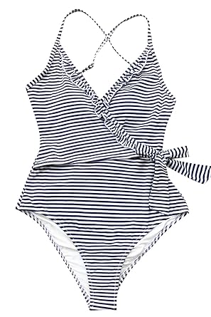 - Cheap Navy and white striped one piece swimsuit