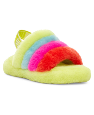 Neon rainbow ugg slides clearance, UGG Kids' Fluff Yeah Slide Rainbow Sheepskin In Neon Rainbow, Size 1 | Ugg slippers, Cute uggs, Kids uggs clearance