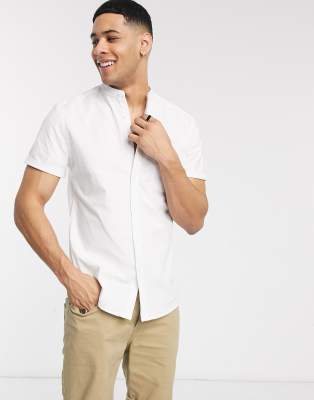 Asos chemise blanche clearance, ASOS DESIGN - Chemise Oxford ajustée et stretch à col grand-père - Blanc | ASOS clearance