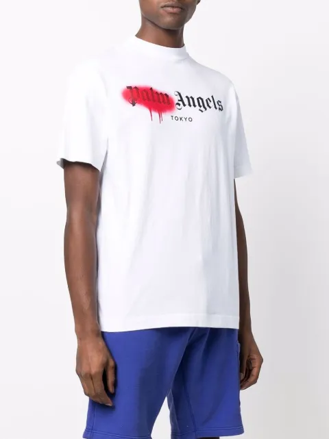Red and white palm angels t shirt clearance, Palm Angels Sprayed logo-print T-shirt clearance