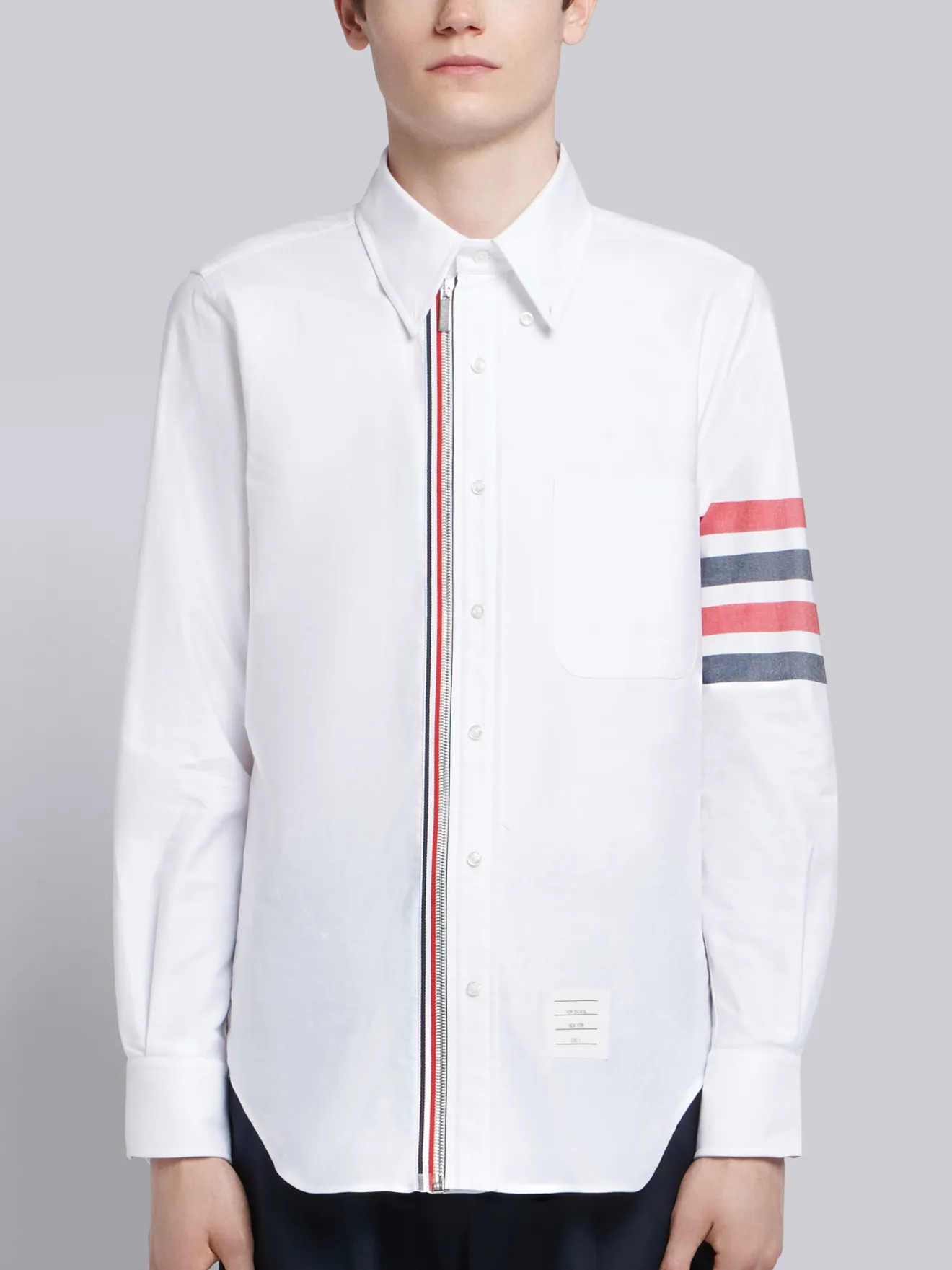 Thom browne tshirt clearance, White Classic Oxford Grosgrain Placket clearance