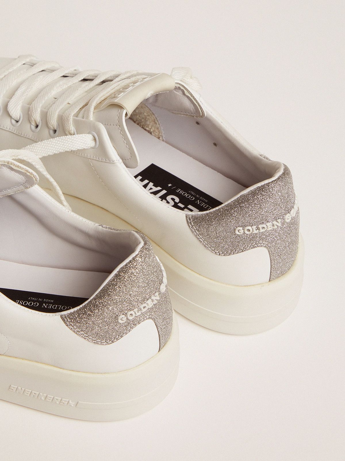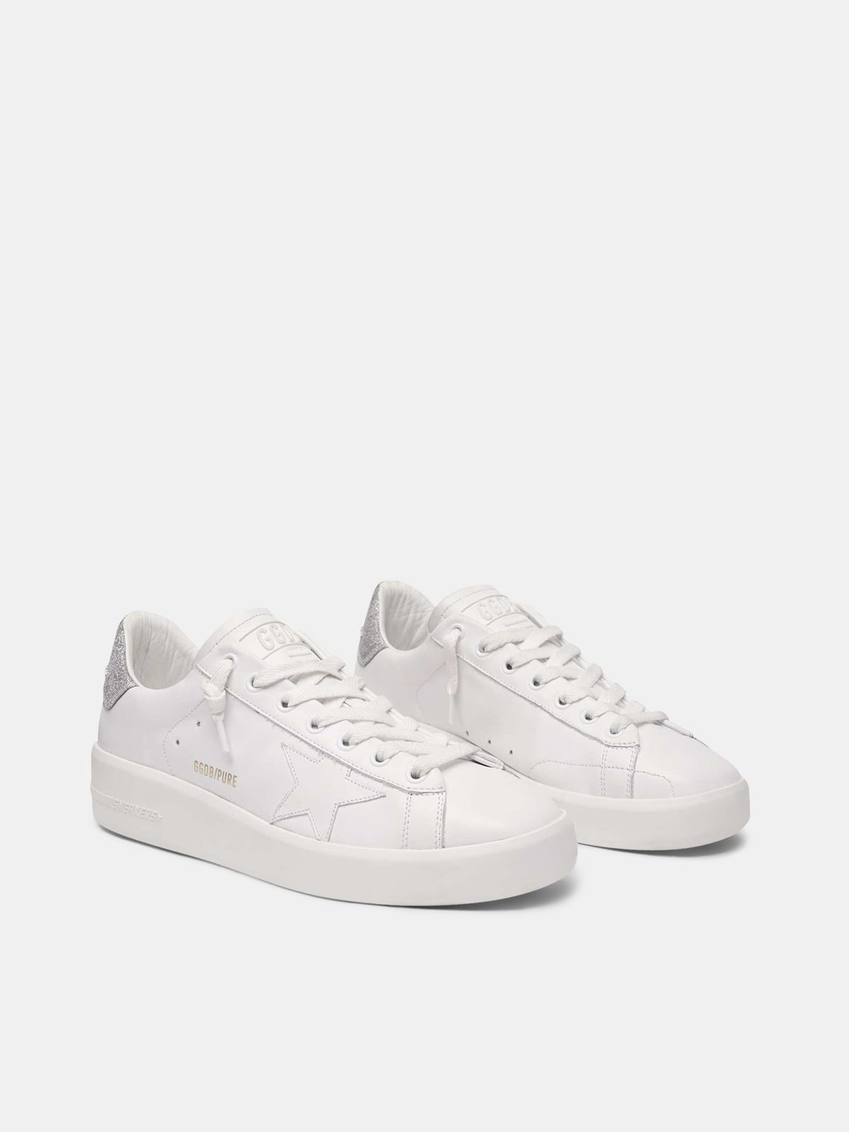 Purestar sneakers with glittery silver heel tab clearance, GG Pure star 603 in white with glitter clearance