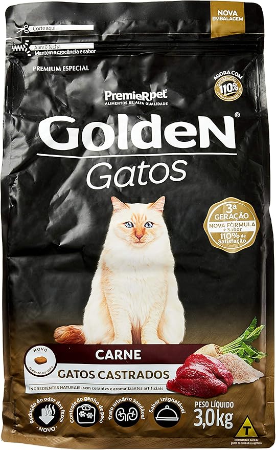 Golden carne gato clearance, Premier Pet Ração Golden para Gatos Adultos Castrados, Raça Adulto, Sabor Carne, 3kg | Amazon.com.br clearance