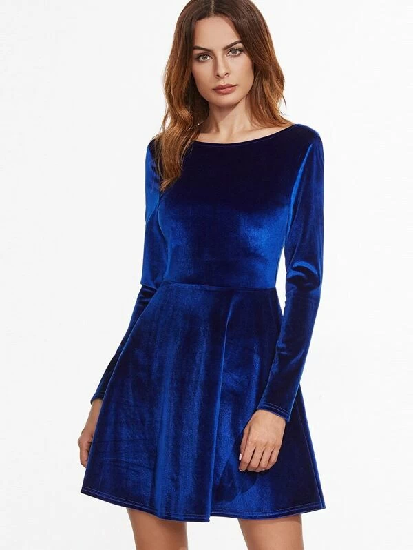 Shein robe bleu roi clearance, Robe évasée en velvet dos rond - bleu roi | Mode en ligne | SHEIN FRANCE clearance