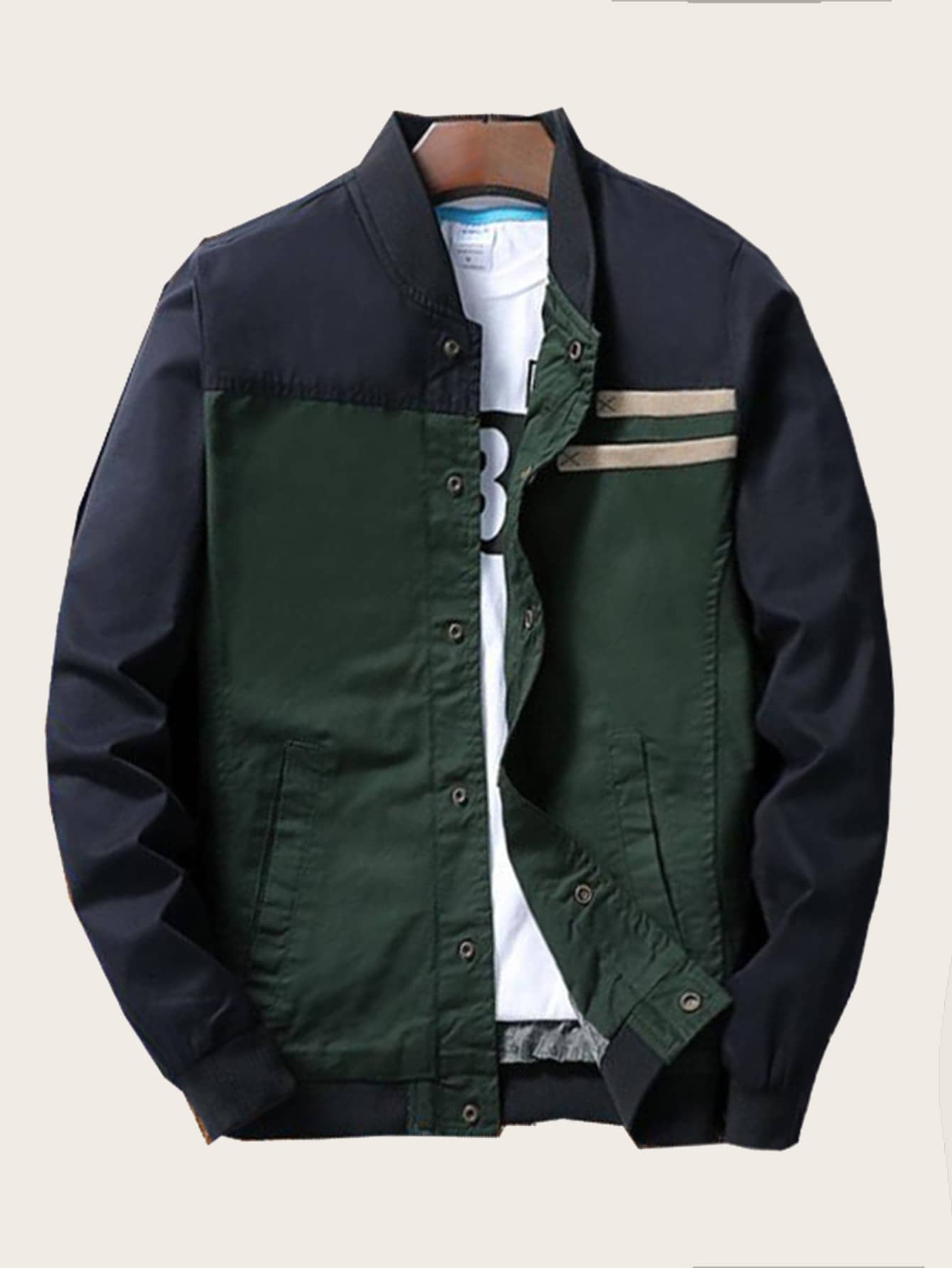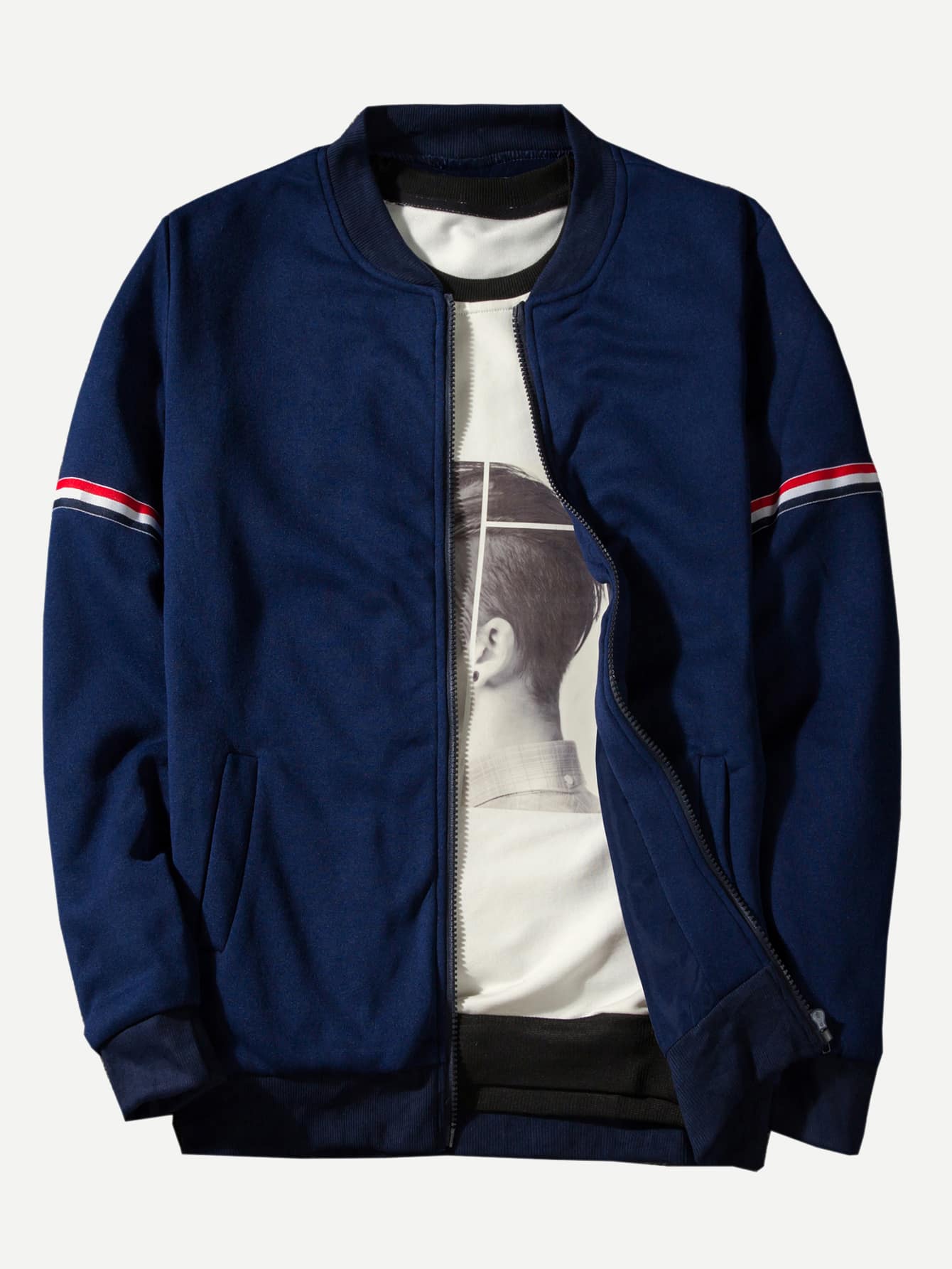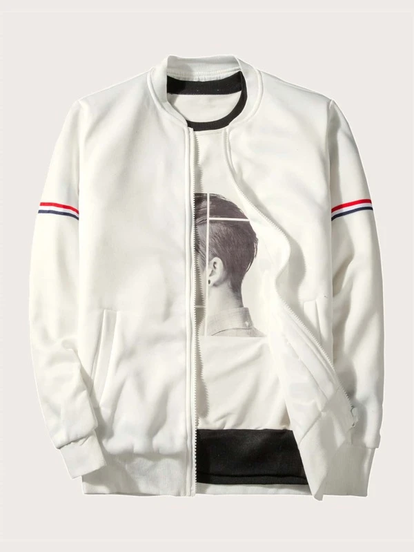 Cazadora de bombardero hombre clearance, Cazadora de bombardero de hombres con cinta de rayas | Moda de Mujer | SHEIN México clearance