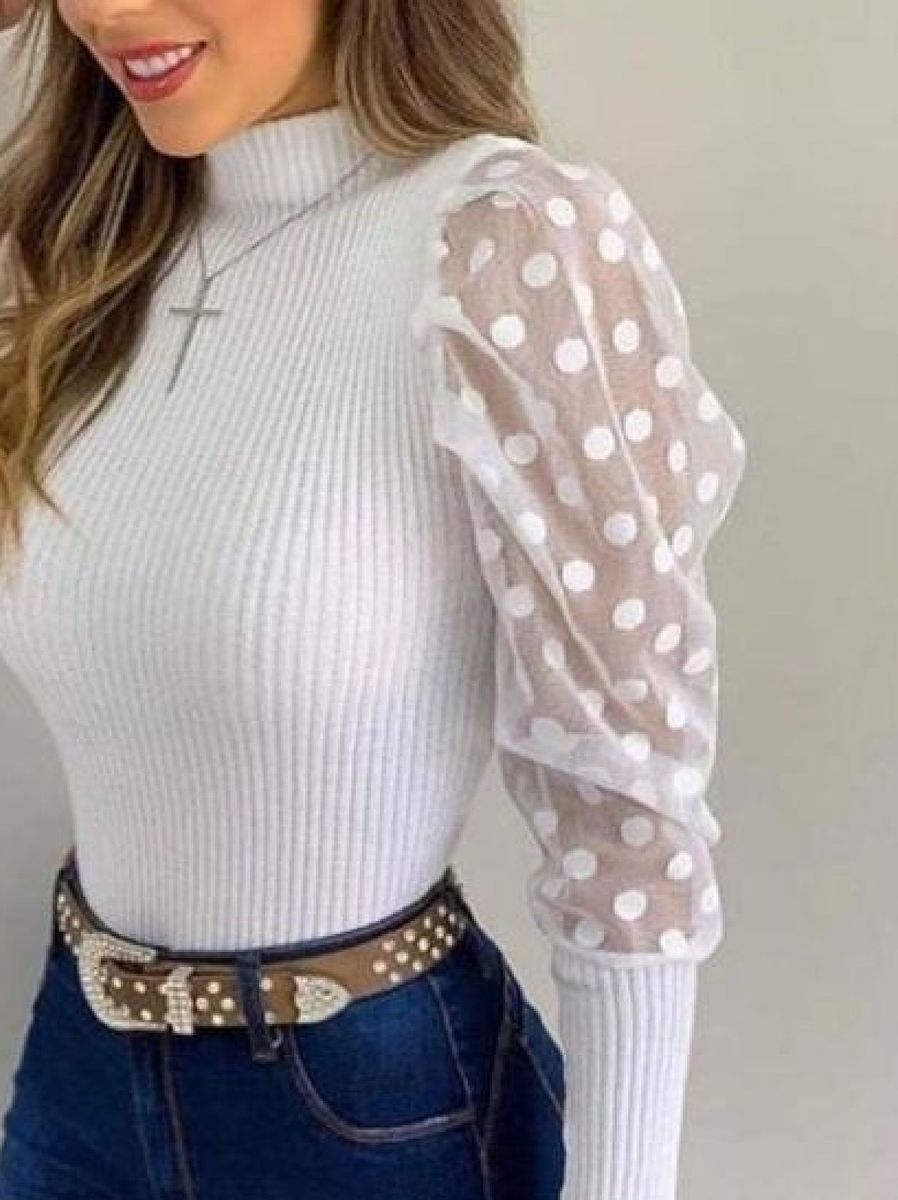 - Blusa de trico com manga de tule free shipping