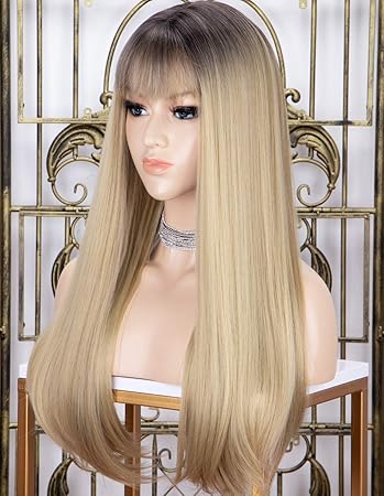 - Blonde wig with dark roots with bangs free shipping