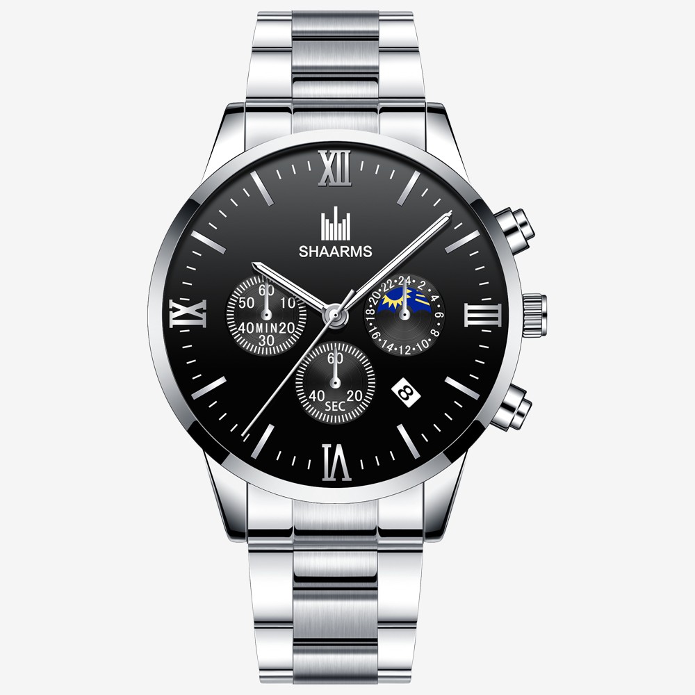 Shaarms relógio clearance, Shaarms Homens Relógio Calendário De Moda Relógio De Aço Inoxidável Relógio De Quartzo Dos Homens De Ouro Preto Sa6110 | Shopee Brasil clearance
