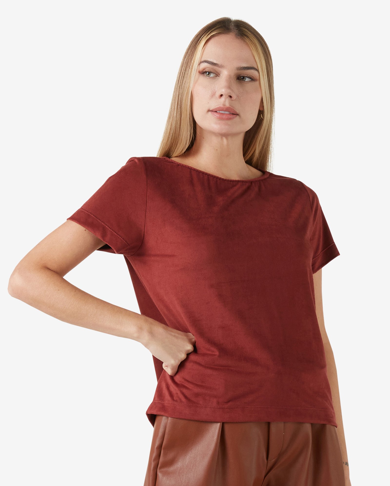 Blusa suede bordo clearance