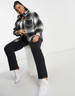 Sobrecamisa cuadros blanca y negra clearance, Sobrecamisa negra a cuadros de New Look Curve | ASOS clearance