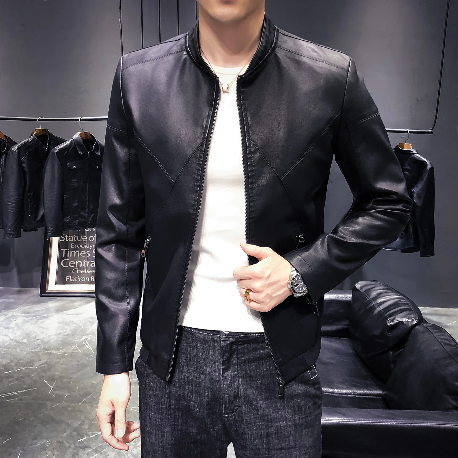 - Chaqueta de cuero hombre slim fit free shipping