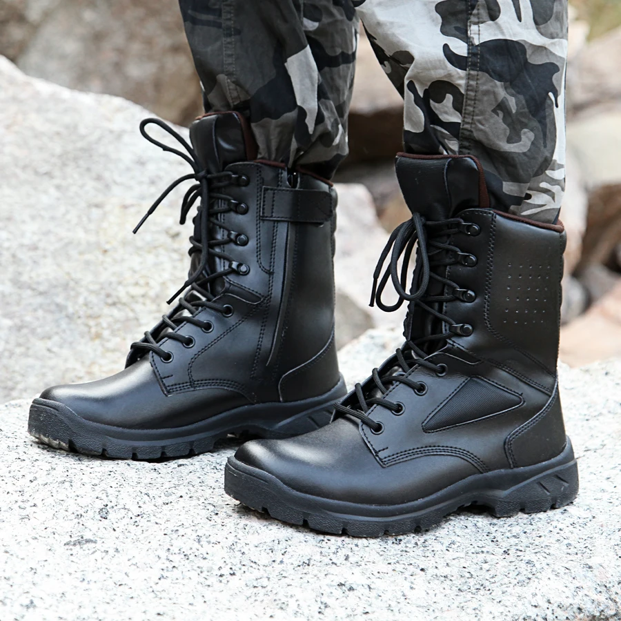 Zapatos de cuero negro para hombre clearance, Botas militares de cuero negro para hombres, botas de trabajo para combate en el desierto, botas tácticas para hombres, botas sólidas para hombres| Botas básicas| - AliExpress clearance