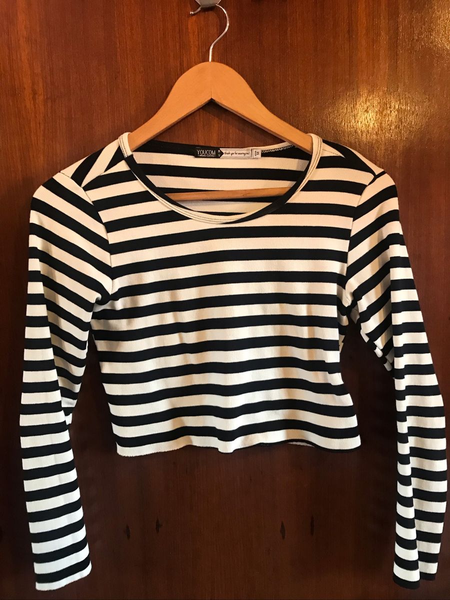- Cropped manga longa listrado free shipping