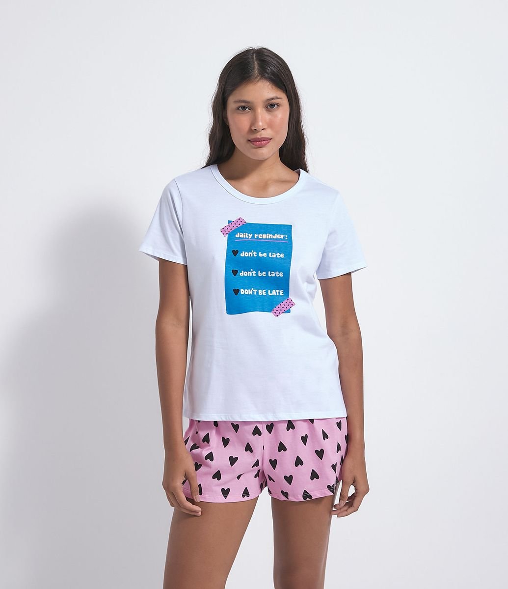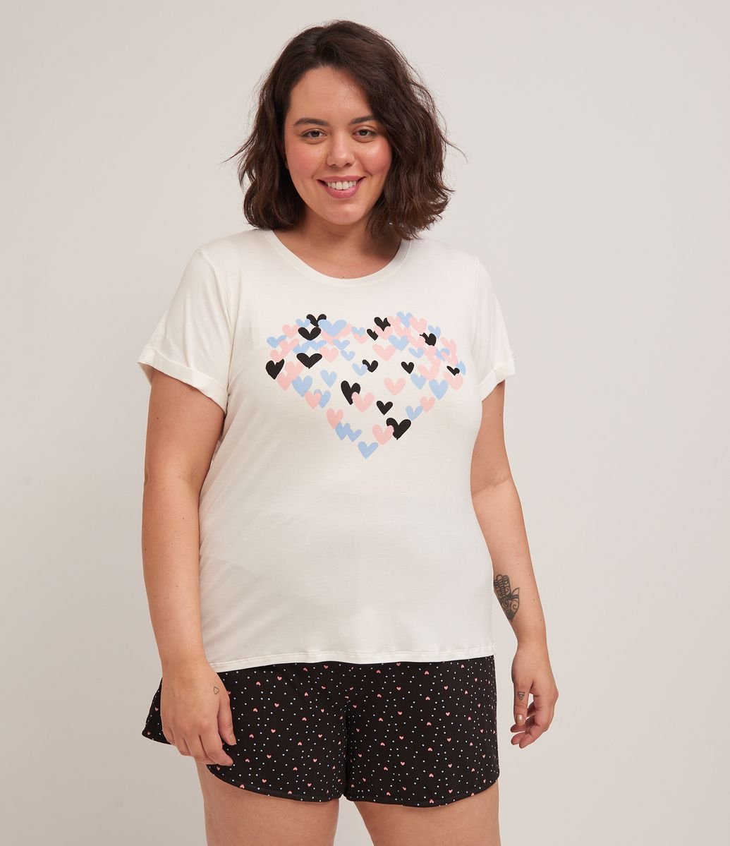 Pijama curto renner clearance, Pijama Curto em Viscolycra Estampa Corações Curve \u0026 Plus Size Branco - Renner clearance