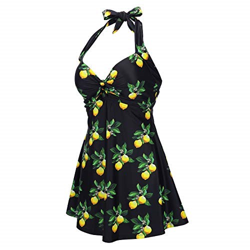 Hde lemon women's one piece swimdress plus size tummy control clearance, HDE Lemon Women's One Piece Swimdress clearance