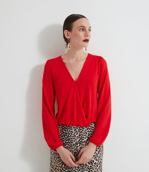 Blusa transpassada renner clearance, Blusa Transpassada com Decote V Vermelho clearance