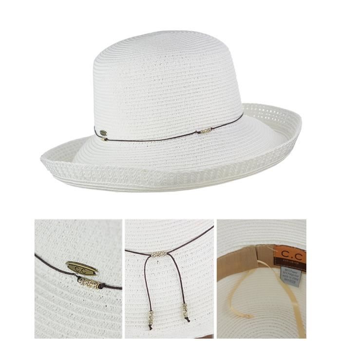 Chapeau cc clearance, C.C Chapeau d'été pour femme décoré de bandes tissés multicolores à bord souple, Blanc/noir - Achat / Vente chapeau - Cdiscount clearance