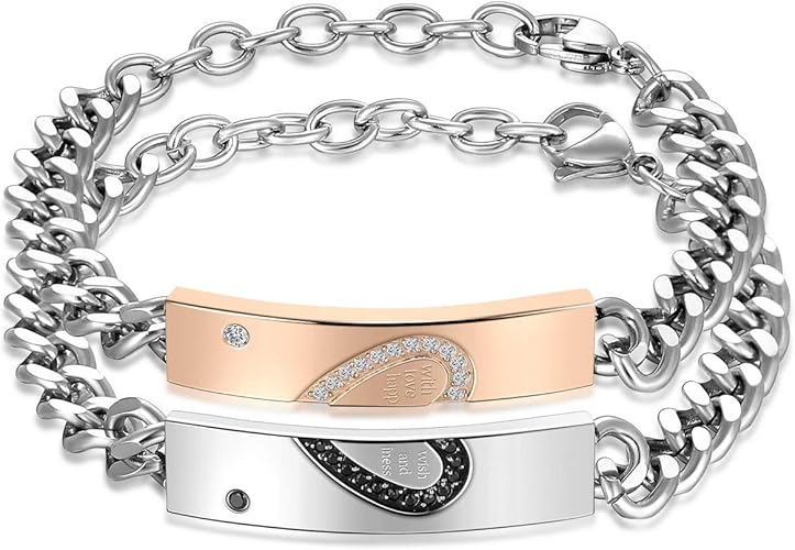 Bracelet coeur separable couple clearance, PiercingJ - Bracelet Couple Amoureux Gravure Personnalisée with Wish Love and Happiness avec Zircon Cœur Séparable Gourmette Poignet Lien Chaîne de Main Cadeau Saint-Valentin(Gravure): Amazon.fr: Bijoux clearance