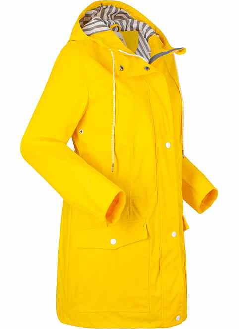 Bon prix impermeable femme clearance, Veste longue imperméable avec capuche et détails fonctionnels - jaune canari/blanc clearance