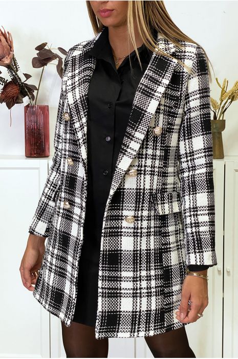 Blazer carreaux clearance, Black and white checked blazer jacket for women. Fashion woman jacket clearance