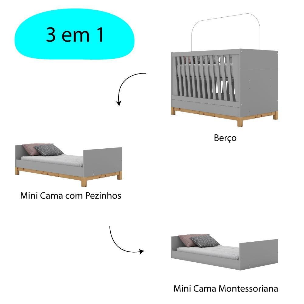 Berço montessoriano 3 em 1 clearance, Berço Mini Cama Montessoriano 3 em 1 Alegria - Cinza | MadeiraMadeira clearance